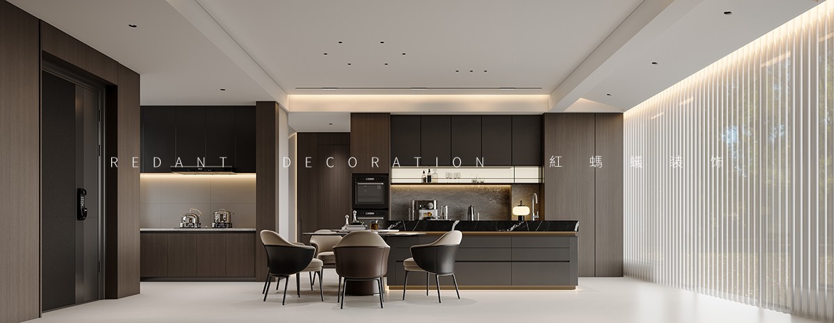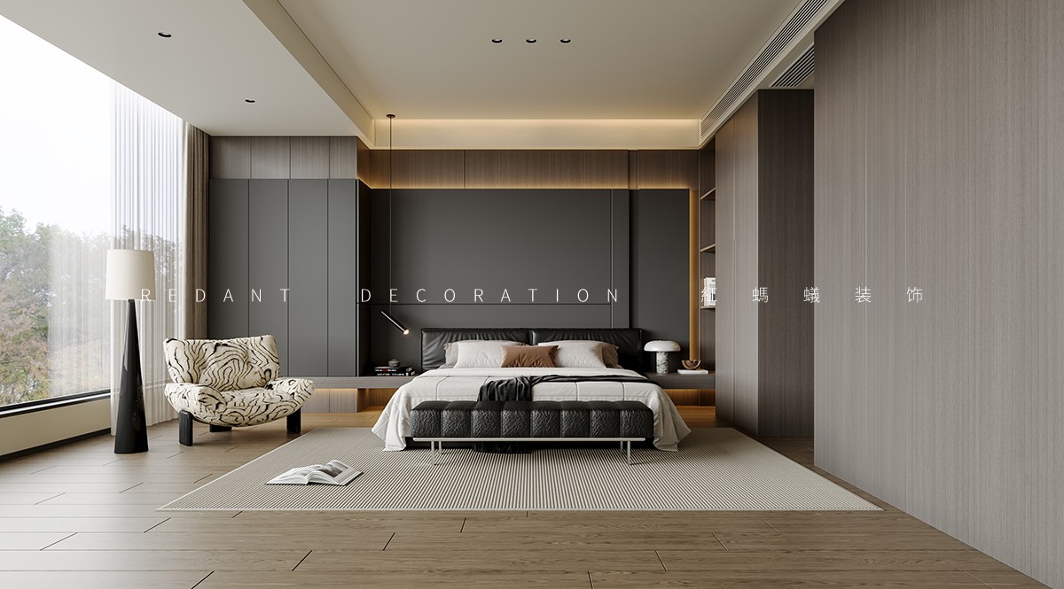 本项目为跃层户型现代轻奢风格设计,以“分层私享、极简奢雅”为核心。空间规划遵循“动区一层、静区二层”逻辑,一层客餐厨无界一体化,楼梯下融入收纳。全屋以深咖木饰面、高级灰等为基底,搭配金属线条等材质,采用无主灯照明,细节处嵌入式柜体、隐形门设计尽显精致,实现功能与美学统一。