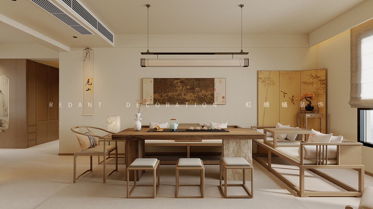 本方案以现代禅意为核心,打造兼具东方雅致与现代舒适的茶室空间,传递 “静、雅、和” 的生活意境。