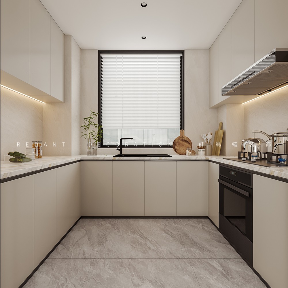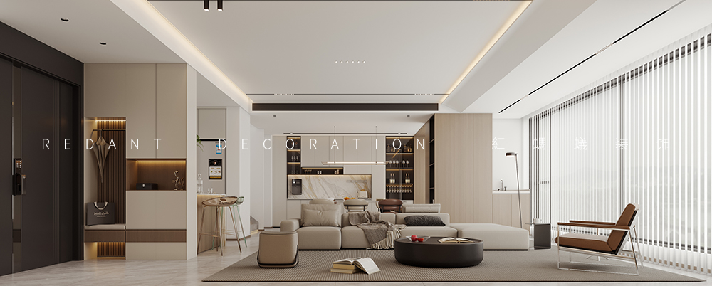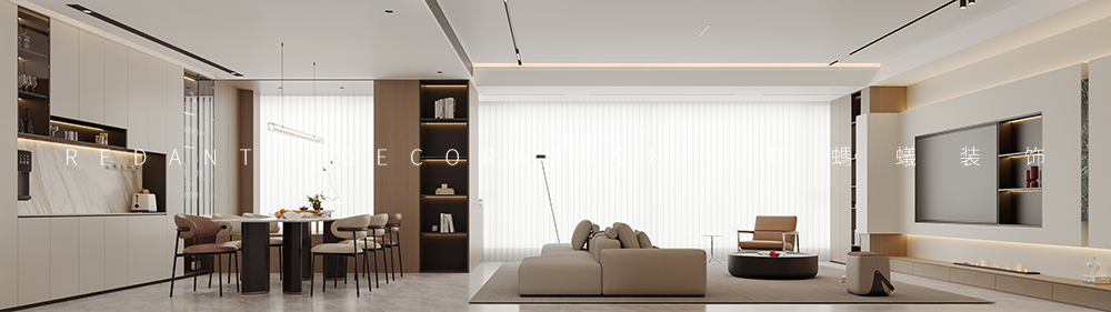 推门进入空间,大面积的落地窗外有着绿意盎然的景色,空间希望打造成一个有温度、有情感、环绕自然的生活环境,以一种舒适、放松的心境享受在家的每一瞬间,抛开烦恼,回归最初的美好。